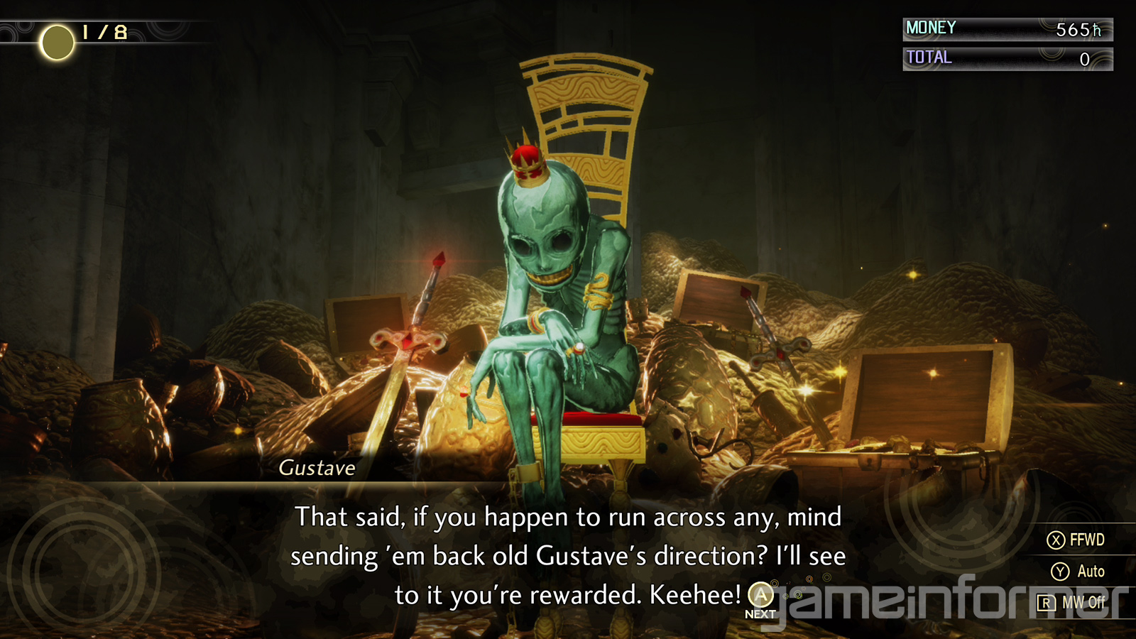 Il classico mercante che vende e compra oggetti, sembra inoltre essere a capo dei Miman. Gustave risiede nel Cadaver’s Hollow, un loculo zeppo di oggetti dorati probabilmente appartenente al Mondo delle Ombre (si accede ad esso solamente tramite i checkpoint). Questo venditore inoltre ricompensa progressivamente il giocatore in base al numero di Miman trovati: chissà cosa succederà una volta trovati tutti e 200 gli esserini…